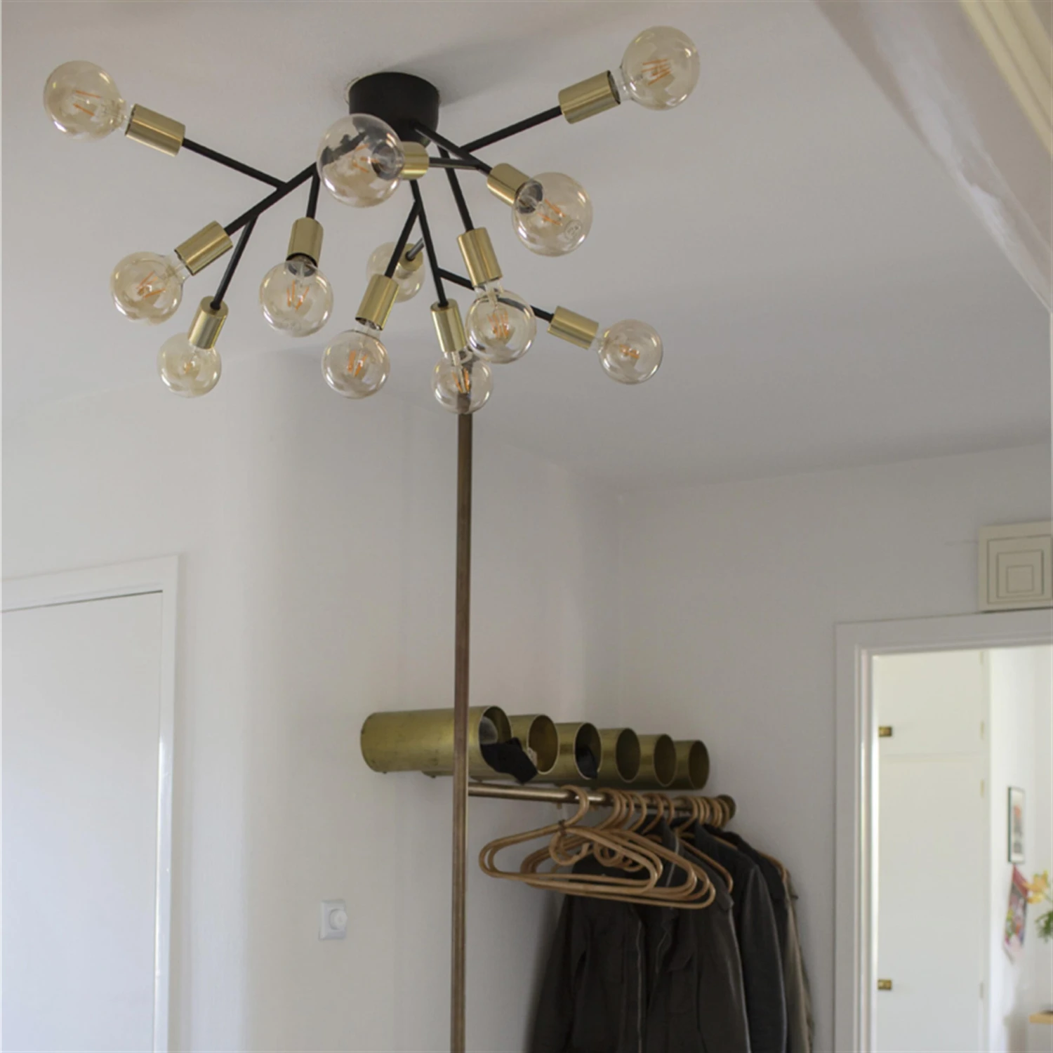 De Heroes plafondlamp van By Rydéns is een stoere lamp die voor een krachtig gevoel in de kamer zorgt. De lamp is gemaakt van gelakt metaal met messingkleurige bevestigingen, en bestaat uit meerdere armen met plek voor wel 12 lichtbronnen. Hero is een lamp voor moedige personen en komt het beste tot zijn recht in grotere kamers of ruimtes met extra plafondhoogte.