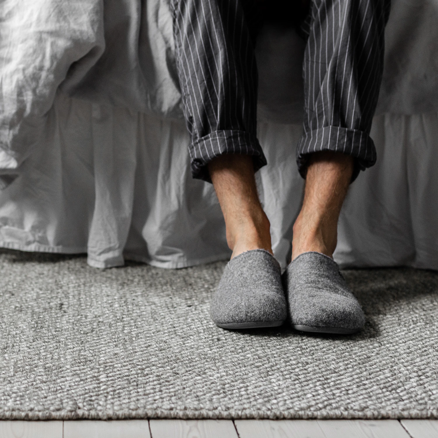 Flock is een handgeweven wollen vloerkleed van Scandi Living met een heerlijk zacht oppervlak, waardoor het perfect is als een uitnodigend woonkamervloerkleed of knus vloerkleed voor de slaapkamer. De Nieuw-Zeelandse wol heeft een natuurlijke grijze tint en heeft geen verdere verfprocessen ondergaan. De prachtige grijs-gemêleerde kleur completeert de lichte houtkleuren die vaak op een harmonische manier terug te zien zijn in een Scandinavisch interieur en de fijne textuur geeft de kamer meteen een gezelligere sfeer.