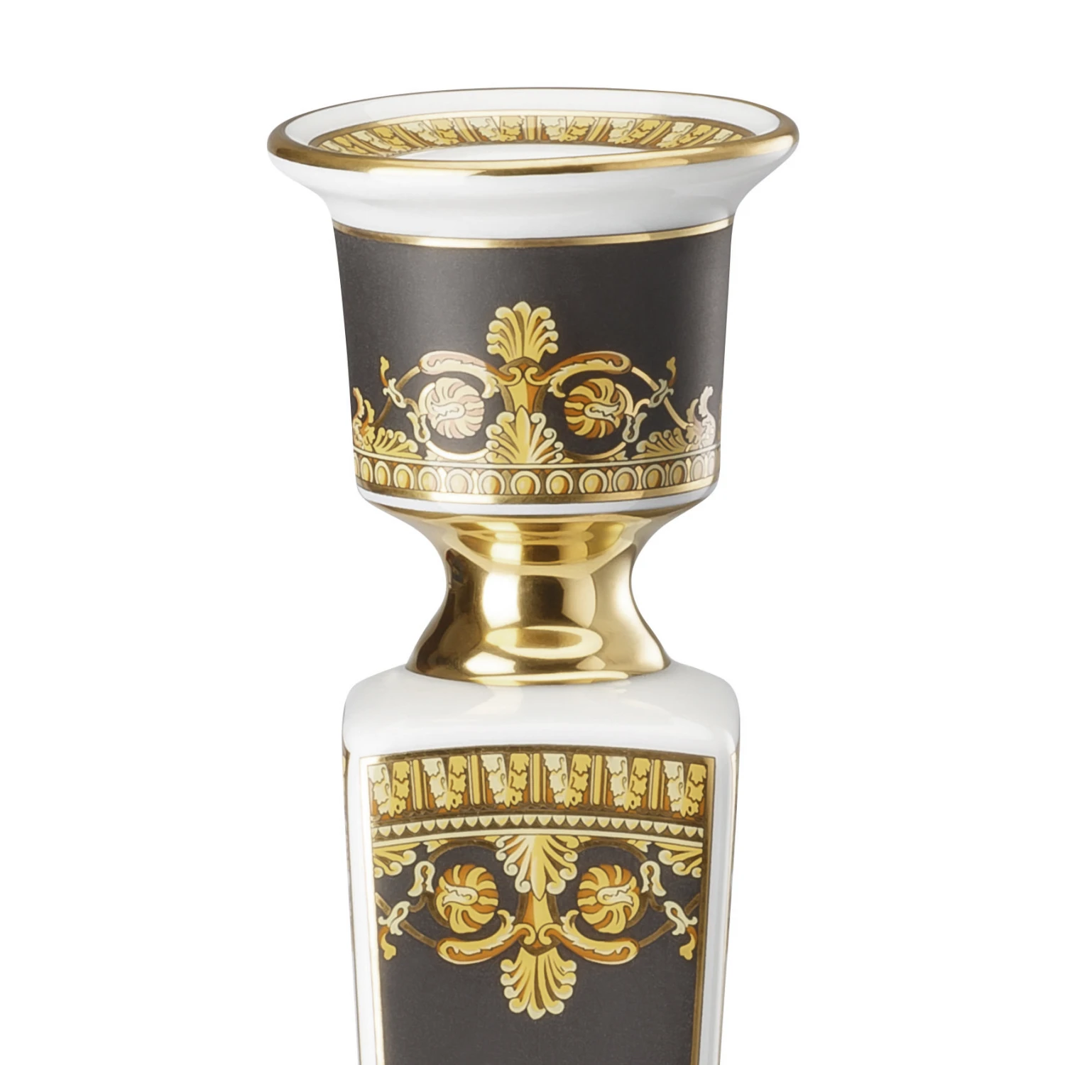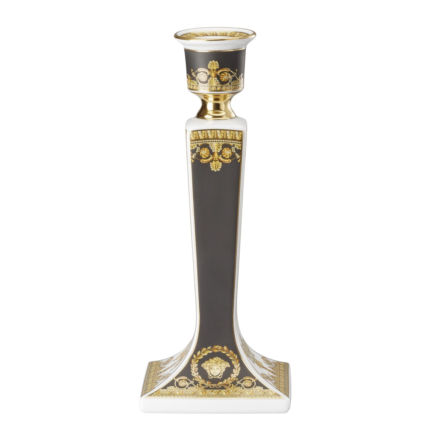 De I love Baroque-collectie is een samenwerking tussen de Duitse porseleinfabrikant Rosenthal en het iconische modehuis Versace. Deze kandelaar is versierd met gouden details die luxe en elegantie uitstralen. De kandelaar is gemaakt van duurzaam veldspaatporselein in de eigen fabriek van Rosenthal in Duitsland. Het resultaat is een perfecte combinatie van solide Duits vakmanschap en extravagant Italiaans design. Combineer de kandelaar met bijvoorbeeld hoogglanzende stearinelichten in wit of zwart en laat ze voor wat extra elegantie zorgen op een gedekte tafel.